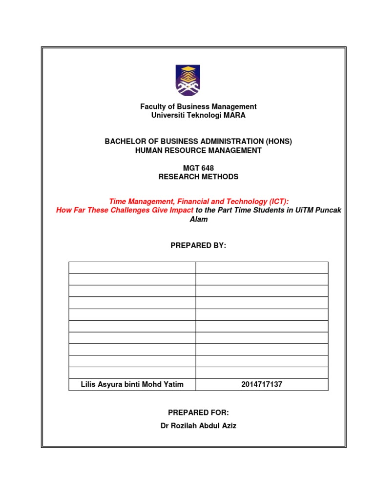 The influence of learning styles on learning experience among part 5 human resources students in uitm kedah prepared by. Faculty of business and management bachelor of business administration hons human resources management ba243 mgt648. BA246 - Bachelor of Business Administration Hons International Business.